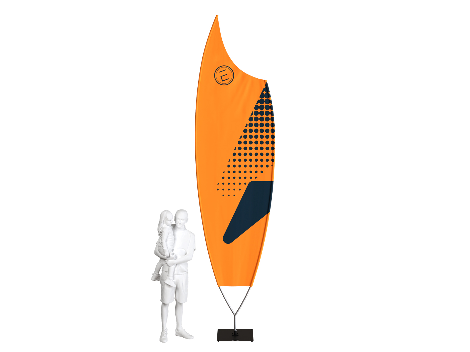 Malgré son format imposant, l’oriflamme Lune s’installe en seulement 2 minutes, ce qui en fait une solution pratique, rapide et efficace. Conçu pour être repérable de loin, il est idéal pour capter les regards dans les salons, foires ou animations en extérieur.