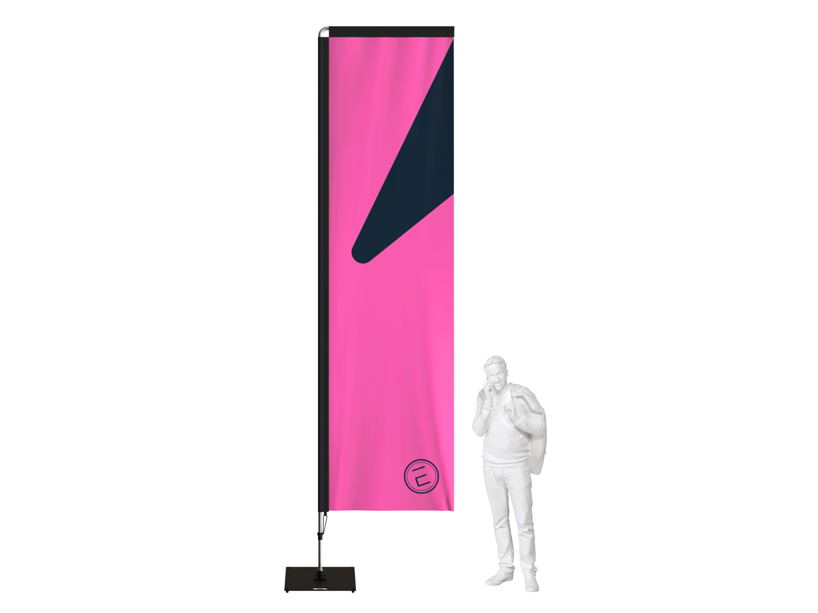 Le Wind Flag est l’oriflamme idéal pour maximiser la visibilité de votre marque. Avec sa hauteur pouvant atteindre 4,80 mètres et son système de rotation à 360°, il attire instantanément l’œil et capte l’attention même à grande distance.