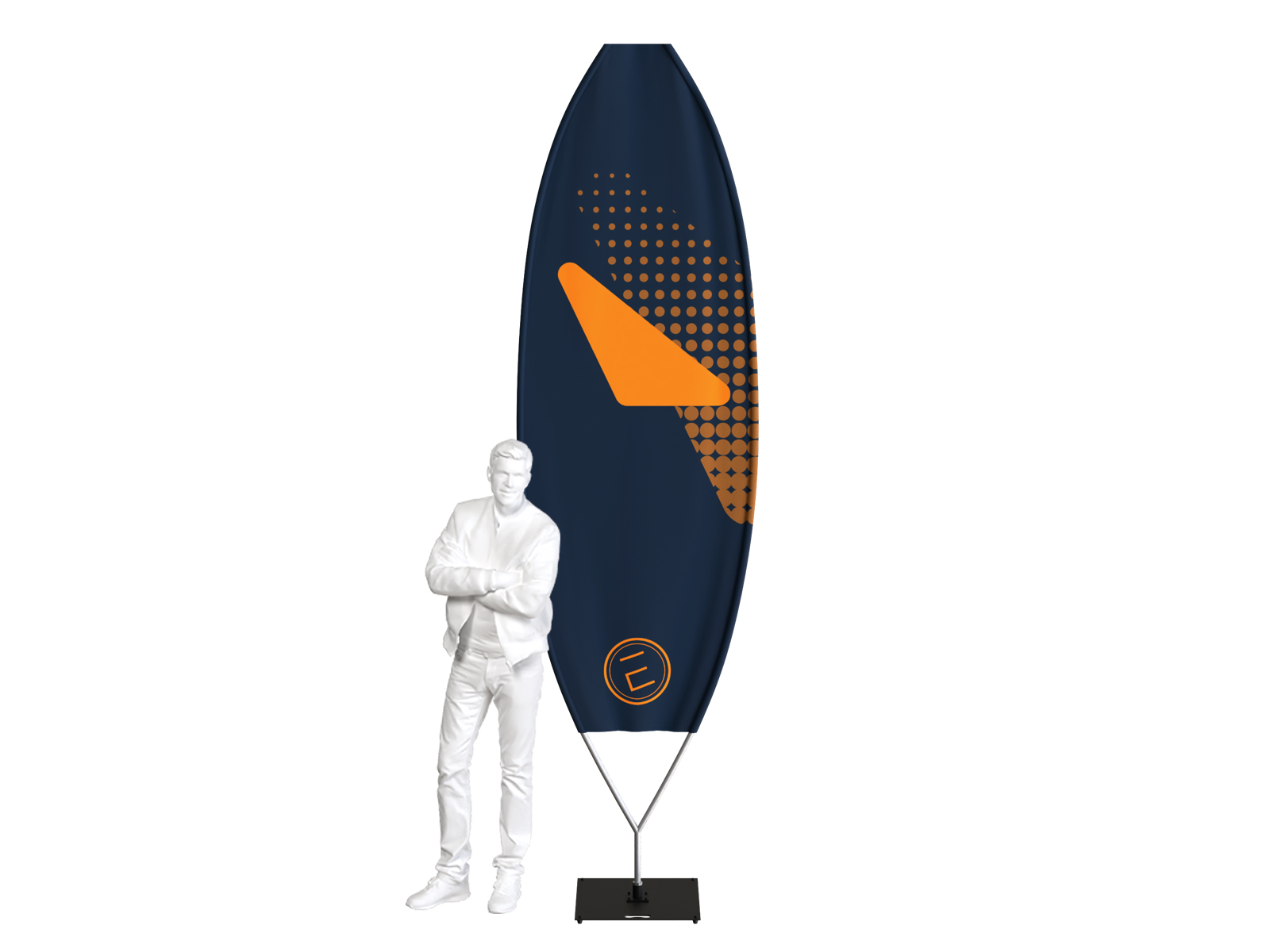 Ces oriflammes originaux assurent une visibilité optimale aussi bien en intérieur qu’en extérieur. Leur forme dynamique et moderne attire immédiatement l’attention et reste facilement repérable de loin, ce qui en fait un support publicitaire idéal pour mettre en valeur votre communication.